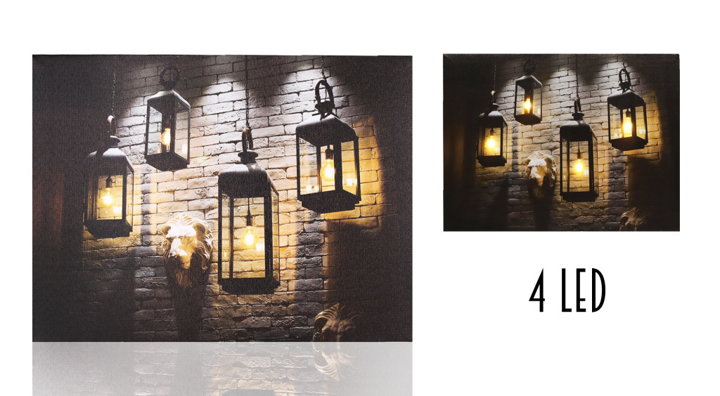 CANVAS VILÁGÍTÓ KÉP 4 LEDDEL, NÉGY LÓGÓ FÉM LÁMPÁS