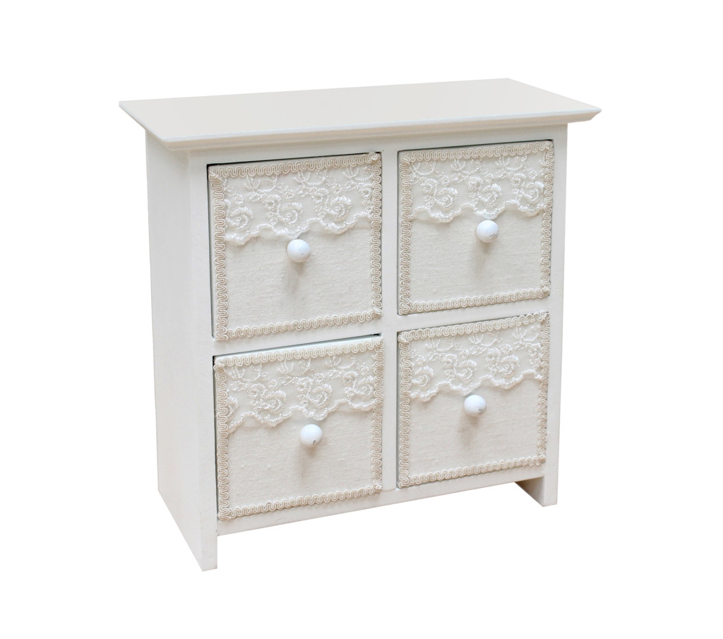 FA ÉKSZERTARTÓ SZEKRÉNY, 4 FIÓKOS, FEHÉR CSIPKÉS