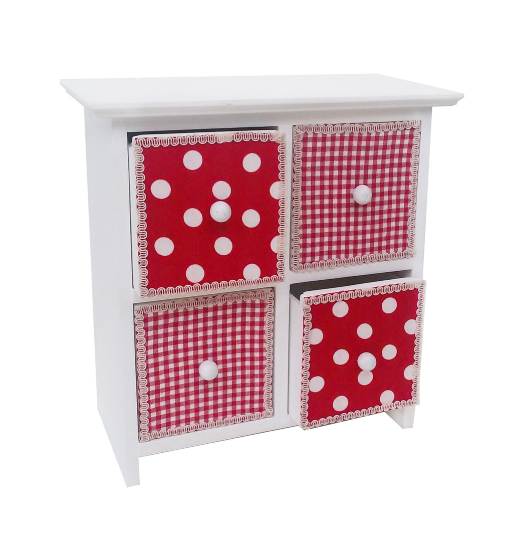FA ÉKSZERTARTÓ SZEKRÉNY, 4 FIÓKOS, PIROS FEHÉR PÖTTYÖS