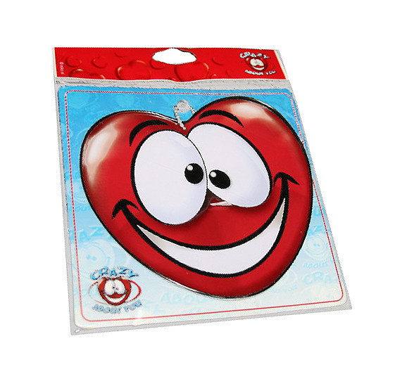 FÉM TÁBLA, SZÍV ALAKÚ, MOSOLYGÓS ARC TAPADÓKORONGGAL CRAZY