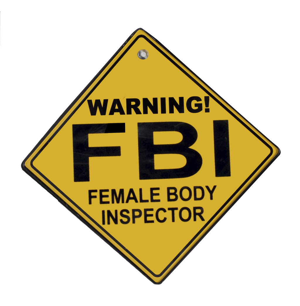 KRESZ TÁBLA WARNING! FBI, FEMALE BODY INSPECTOR FELIRAT