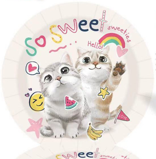 PARTY PAPÍR TÁNYÉR, 10 DARABOS, MACSKÁS