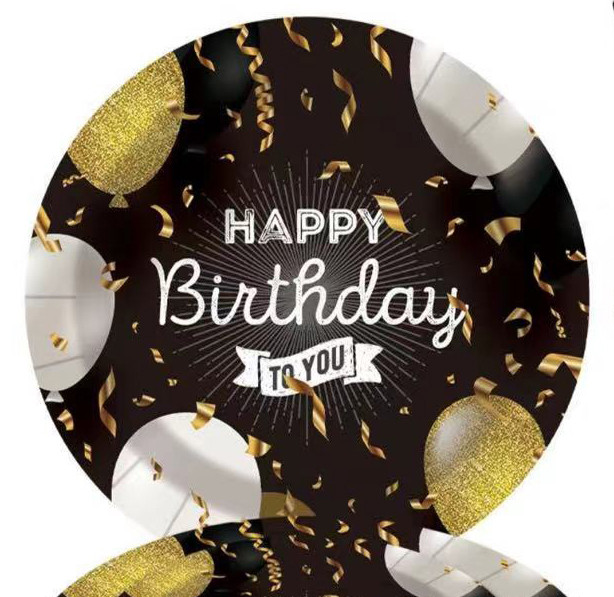 PARTY PAPÍR TÁNYÉR, 10 DARABOS, HAPPY BIRTHDAY FELIRATTAL, ARANY FEKETE