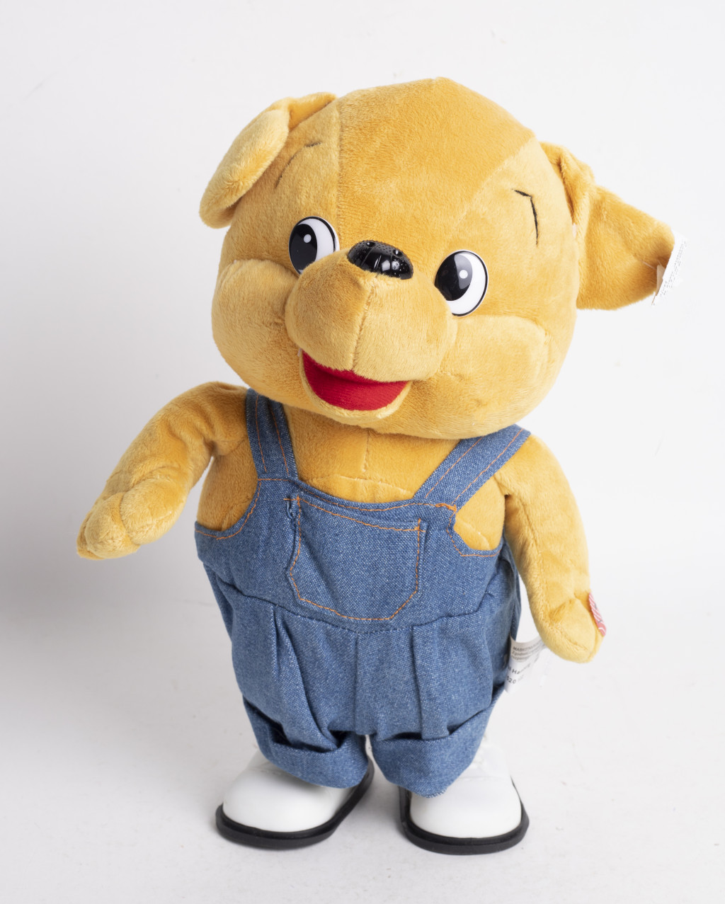 PLÜSS ZENÉLŐ ÉS SÉTÁLÓ MEDVE, FARMERNADRÁGOS