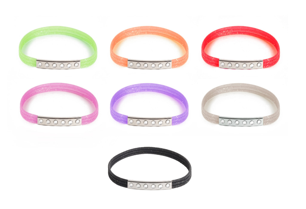 SZILIKON KARKÖTŐ GLITTERES 6 KŐVES METÁLLAPPAL
